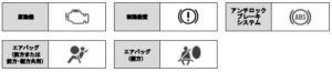 <保安基準で定められた自動車メーカー共通の警告灯>