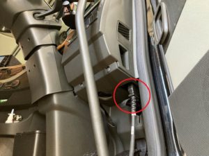 (ボルボ・トラックの場合は、アクセル・ペダル上部にOBDコネクターが装備されています。)